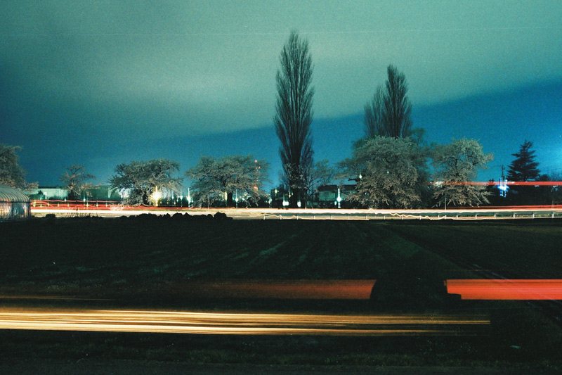 で、新潟での思い出深い風景。アパートの脇の桜並木です。ここはホント好きでしたね〜、春だけじゃなく四季を通して楽しめる感じがお気に入りの理由でした。引っ越す前に桜をと思って撮った時の一枚。暗くなってきたので長く開いて撮ってみました。風があってなかなかうまく撮れなかった日だったんですが、これはなんだか雰囲気あって気に入りました。